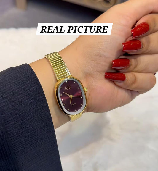 ساعة يد نسائية أنيقة بسوار معدني ذهبي
