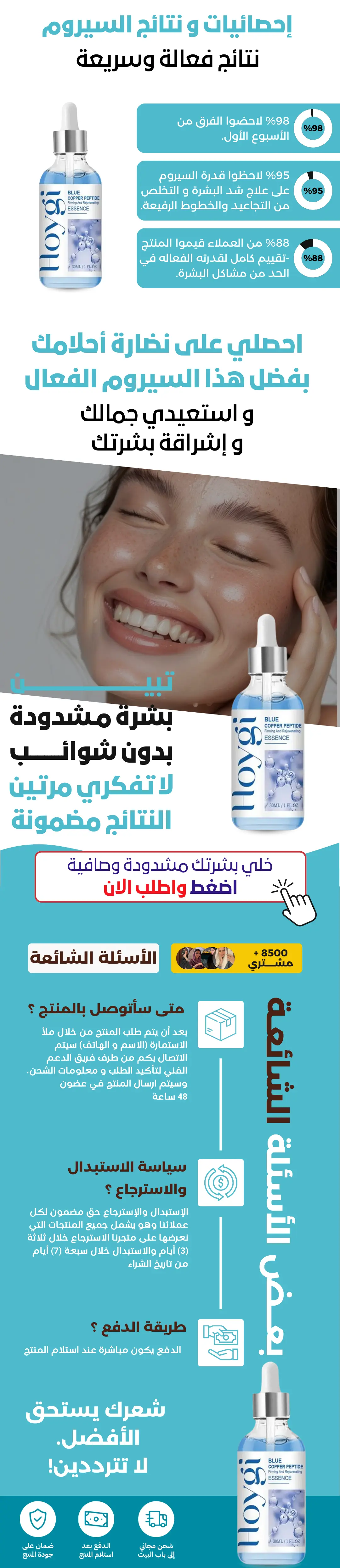 سيروم النحاس الأزرق المركز لشد البشرة ومحاربة التجاعيد